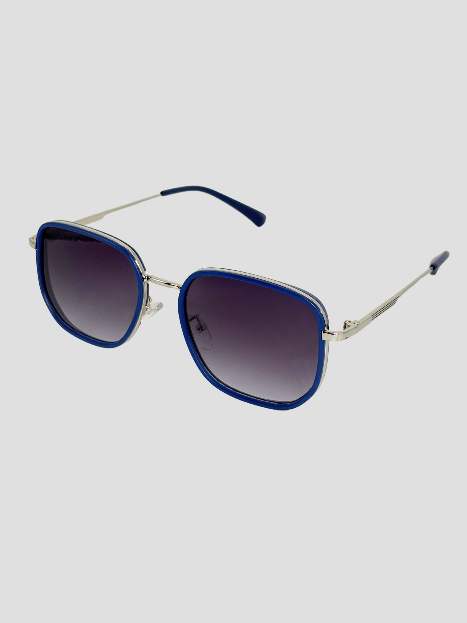 Eleganz trifft Leichtigkeit. Diese quadratische Sonnenbrille mit silbernem Metallrahmen und tiefblauen Akzenten verleiht deinem Look ein souveränes und stilbewusstes Statement. Die abgerundete Form in Kombination mit einem dezenten Farbverlauf macht sie zum idealen Begleiter für sonnige Tage.