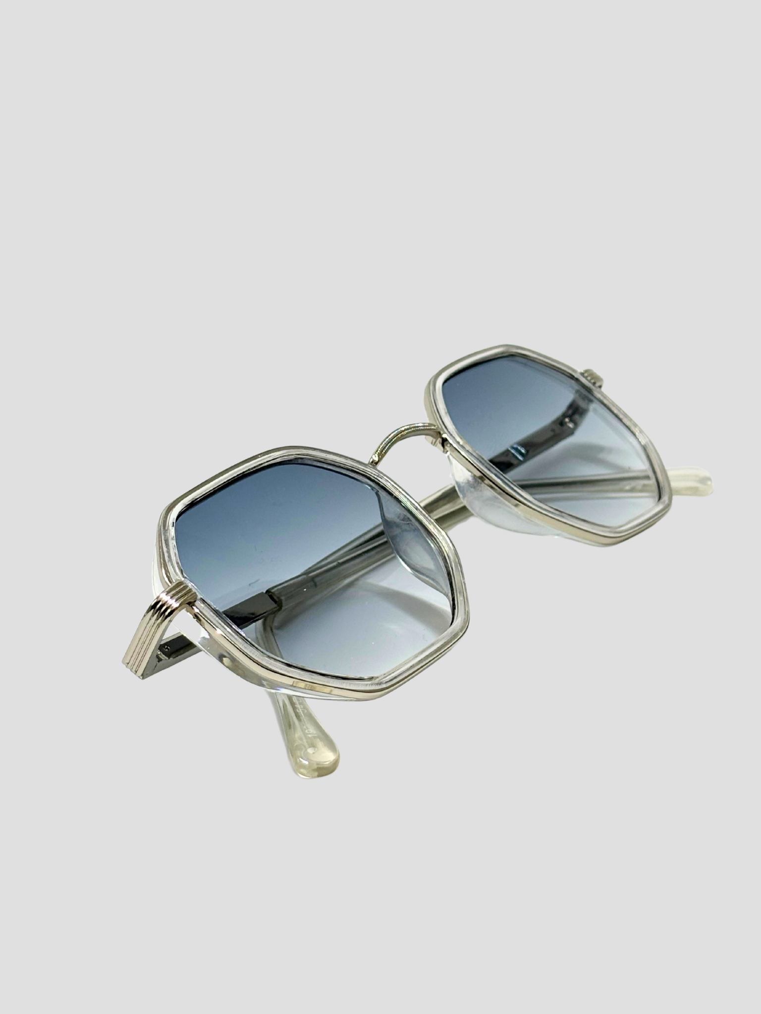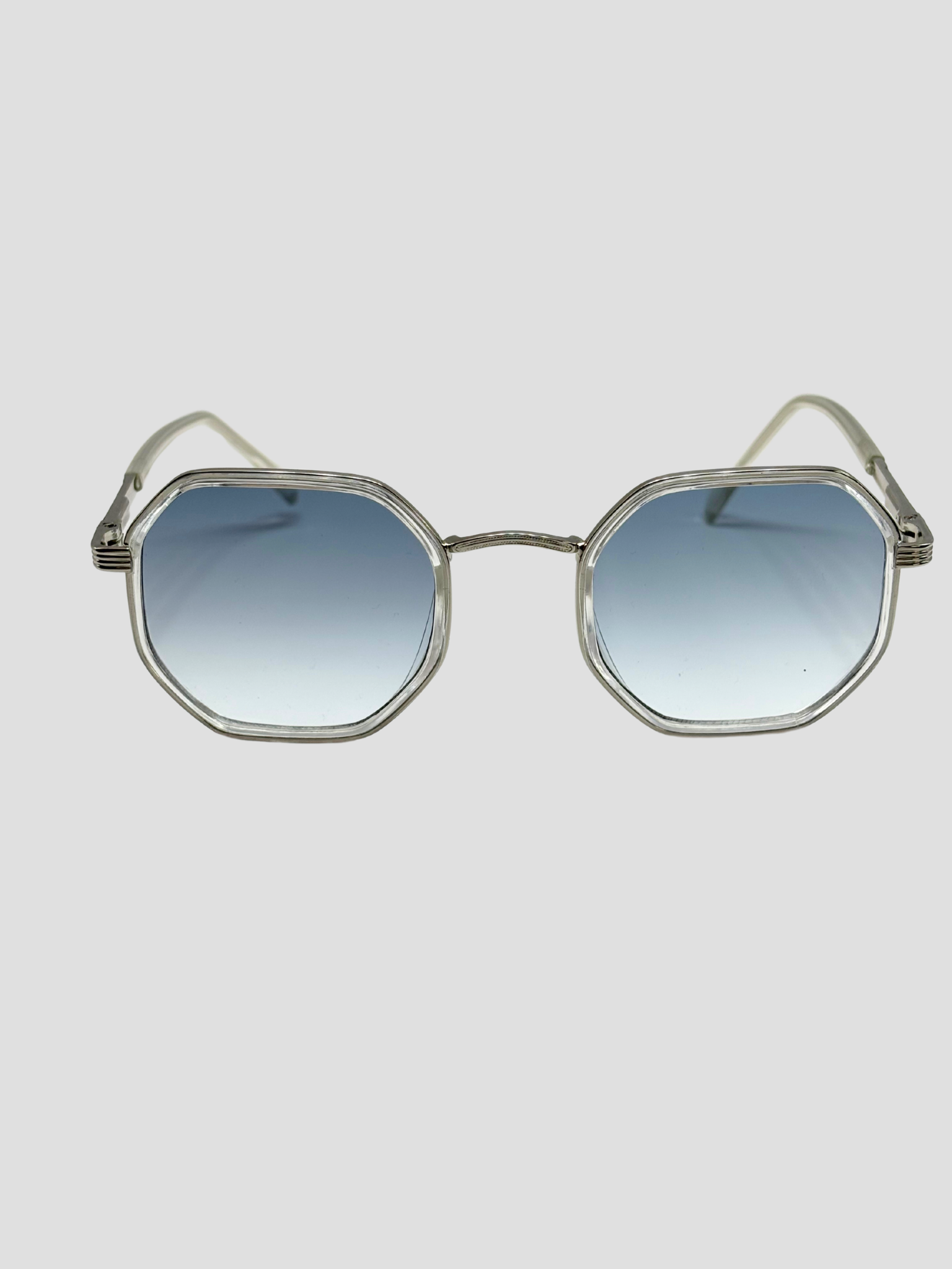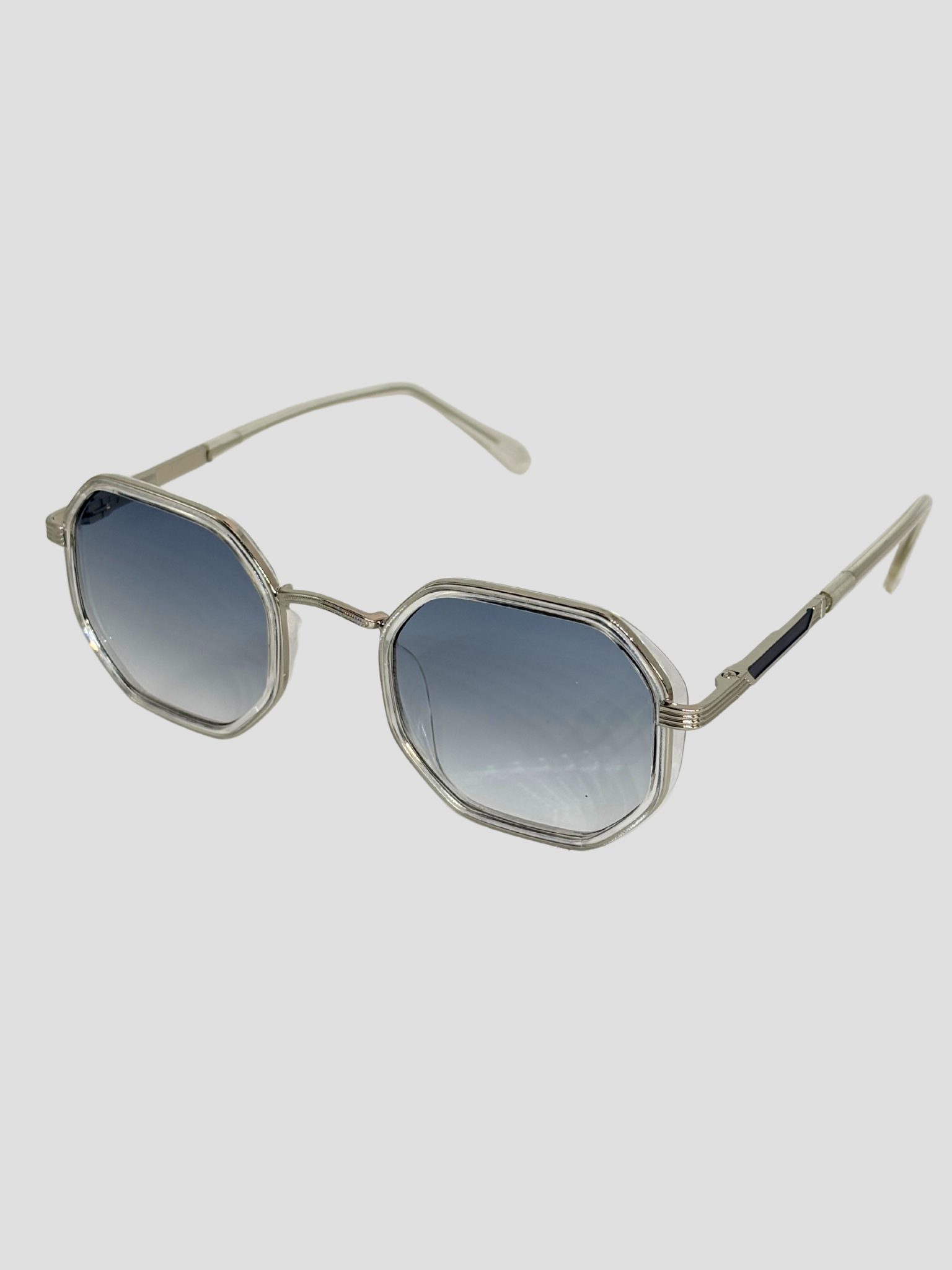 Geometrie in Perfektion. Die Octa Ciel überzeugt mit einem modernen achteckigen Design, kombiniert mit einem eleganten silbernen Metallrahmen und himmelblauen Verlaufsgläsern. Leicht, raffiniert und unisex – für alle, die klare Linien lieben.